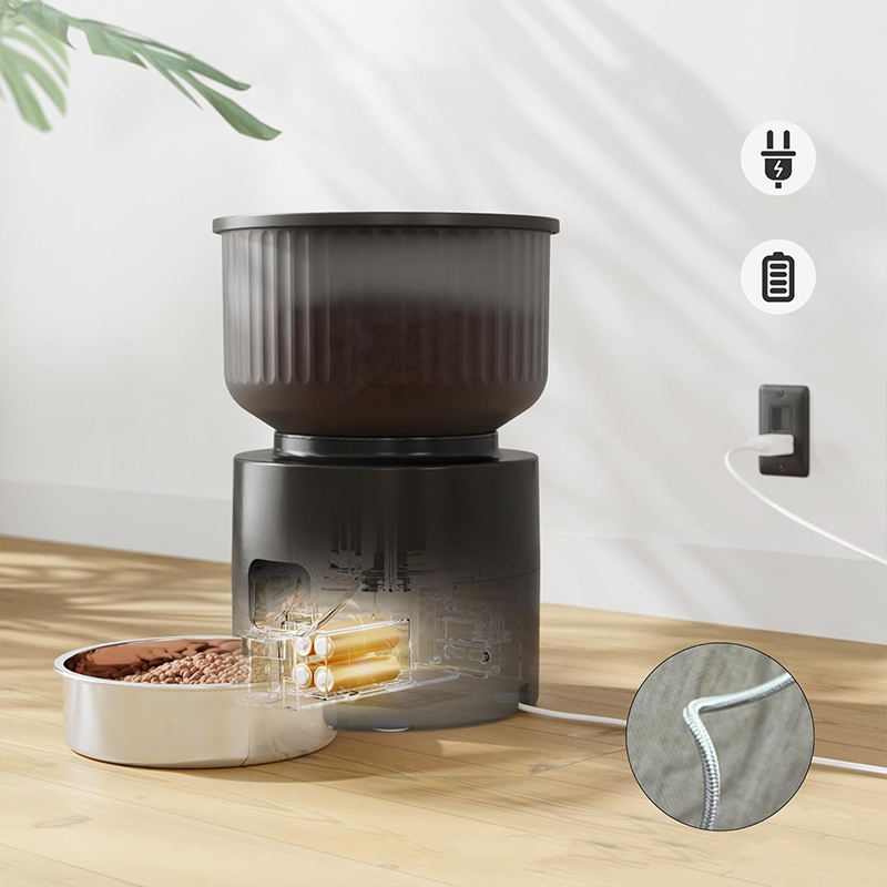 This Wi-Fi fully automatic cat feeder supports remote smart APP control, allowing you to easily use the device to program and monitor your pet’s eating via WiFi. Up to 10 meals can be scheduled daily, with 1-12 portions per meal, to ensure your cat is fed as planned. The removable food box and stainless steel bowl are easy to clean, and the built-in desiccant keeps the food fresh. The stainless steel bowl ensures hygiene and prevents pet chin acne problems. Dual power supply design ensures that pets can eat on time even if there is a power outage.
